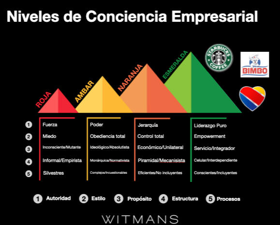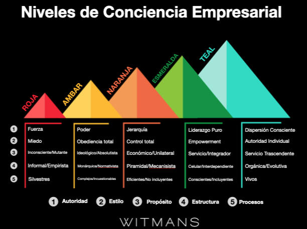 Hace algunos años, Frederic Laloux publicó un libro que propone una nueva forma de gestionar y organizar las empresas. En él, describe cinco niveles de evolución organizacional, identificados por diferentes colores.